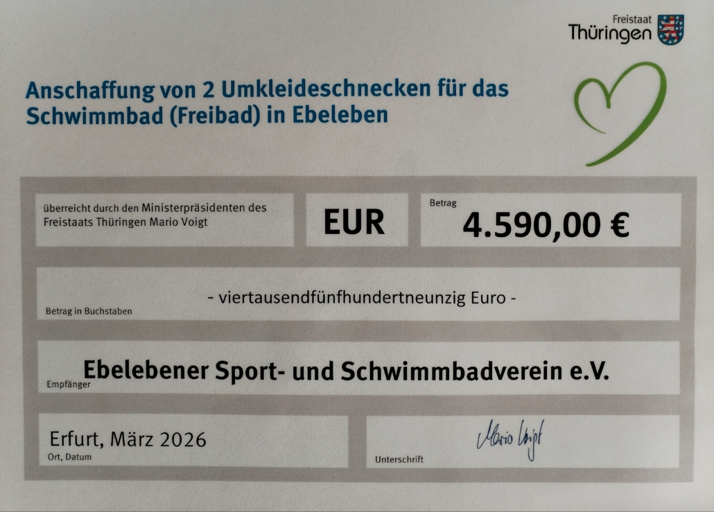 Bei der Übergabe wurde zudem deutlich, wie wichtig die Zusammenarbeit mit der Stadt ist. Auch Bürgermeister Steffen Gröbel und Bademeister Kai Burkhardt begleiteten den Termin und unterstrichen damit die gemeinsame Unterstützung für die Weiterentwicklung unseres Bades.