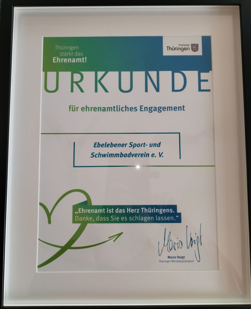 Die Fördermittel (Bild1) und Ehrenurkunde (Bild 2) wurden durch den Ehrenamtsbeauftragten der Thüringer Staatskanzlei Guntram Wothly übergeben. Darüber hinaus war es eine große Wertschätzung, dass auch der Wahlkreisabgeordnete Stefan Schard bei der Fördermittelübergabe anwesend war. Stellvertretend für den Verein nahmen Doreen Bartsch und Anke Siegel aus dem Vorstand des ESSV die Förderung entgegen.